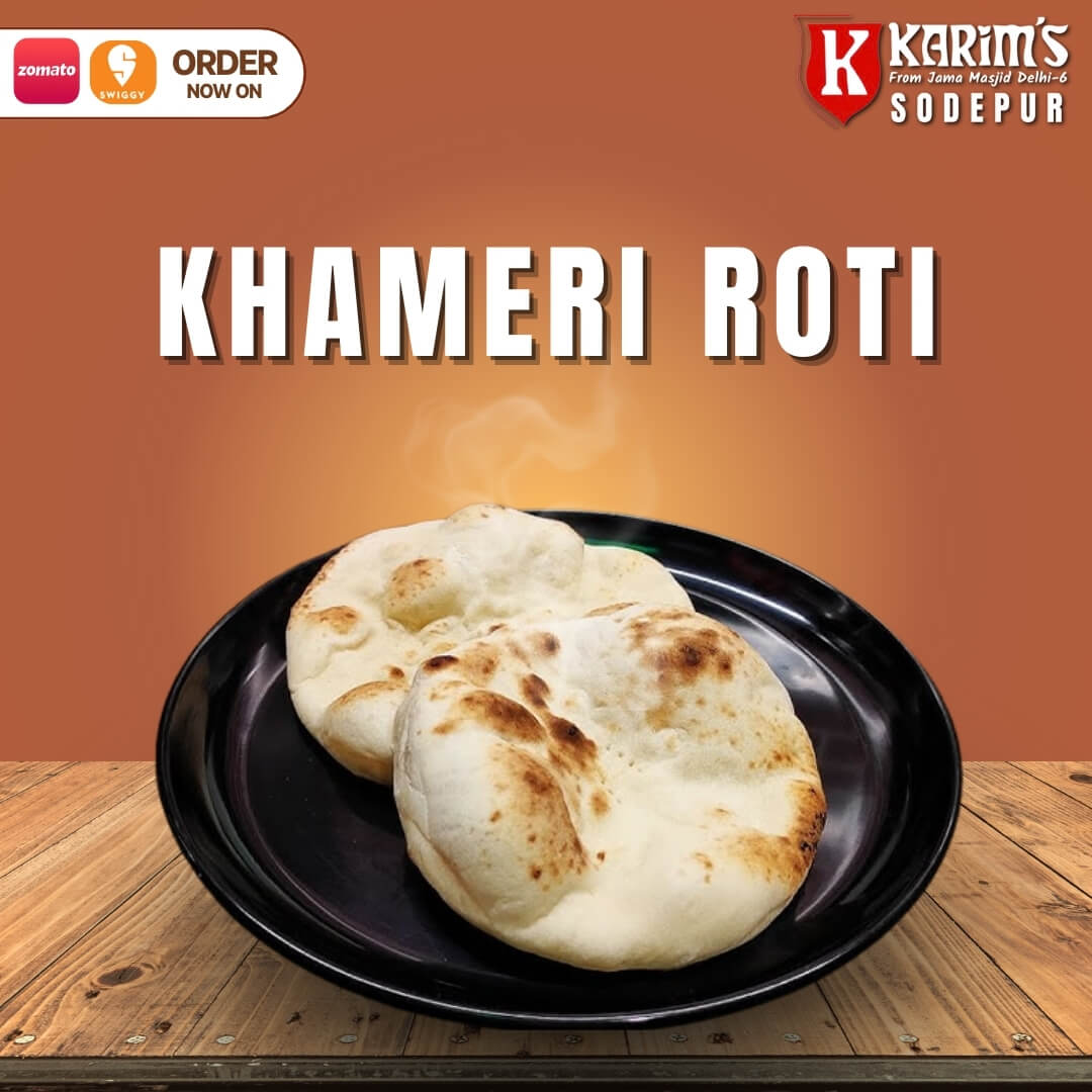 Our Khameri Roti is a traditional North Indian flatbread made from whole wheat flour and yeast, giving it a unique, soft, and slightly tangy flavor. This roti is leavened, resulting in a thicker, airier texture that pairs wonderfully with rich gravies and curries. Baked in the tandoor, it has a slightly crisp exterior while maintaining a soft, fluffy interior, making it a perfect accompaniment to your meal.