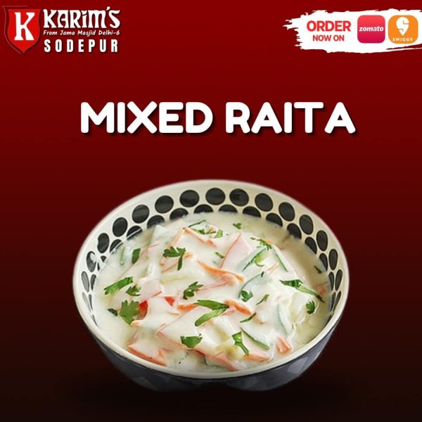 Balance out your meal with our Mixed Raita, a cool and creamy yogurt-based side dish that’s both soothing and flavorful. We blend fresh yogurt with a medley of crunchy vegetables like cucumbers, tomatoes, and onions, and finish it off with a sprinkle of cumin powder, fresh coriander, and a dash of chaat masala for a